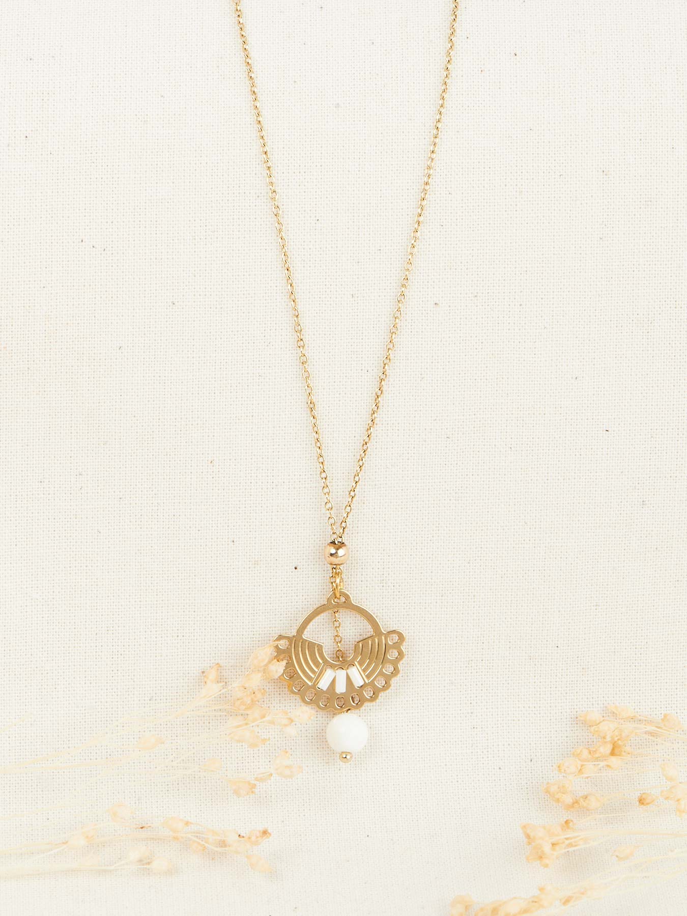 En langue de la tribu native Américaine Sioux, Wachiwi signifie « Fille dansante ». Ce collier espiègle est à la fois discret et audacieux, est constitué d’une pièce de laiton dorée brodée de perles du Japon. A porter aussi bien au quotidien qu’en soirée, il est réglable grâce à une perle coulissante, vous pouvez ainsi personnaliser la façon de le porter selon vos envies. Laiton recouvert d’or 24carats.